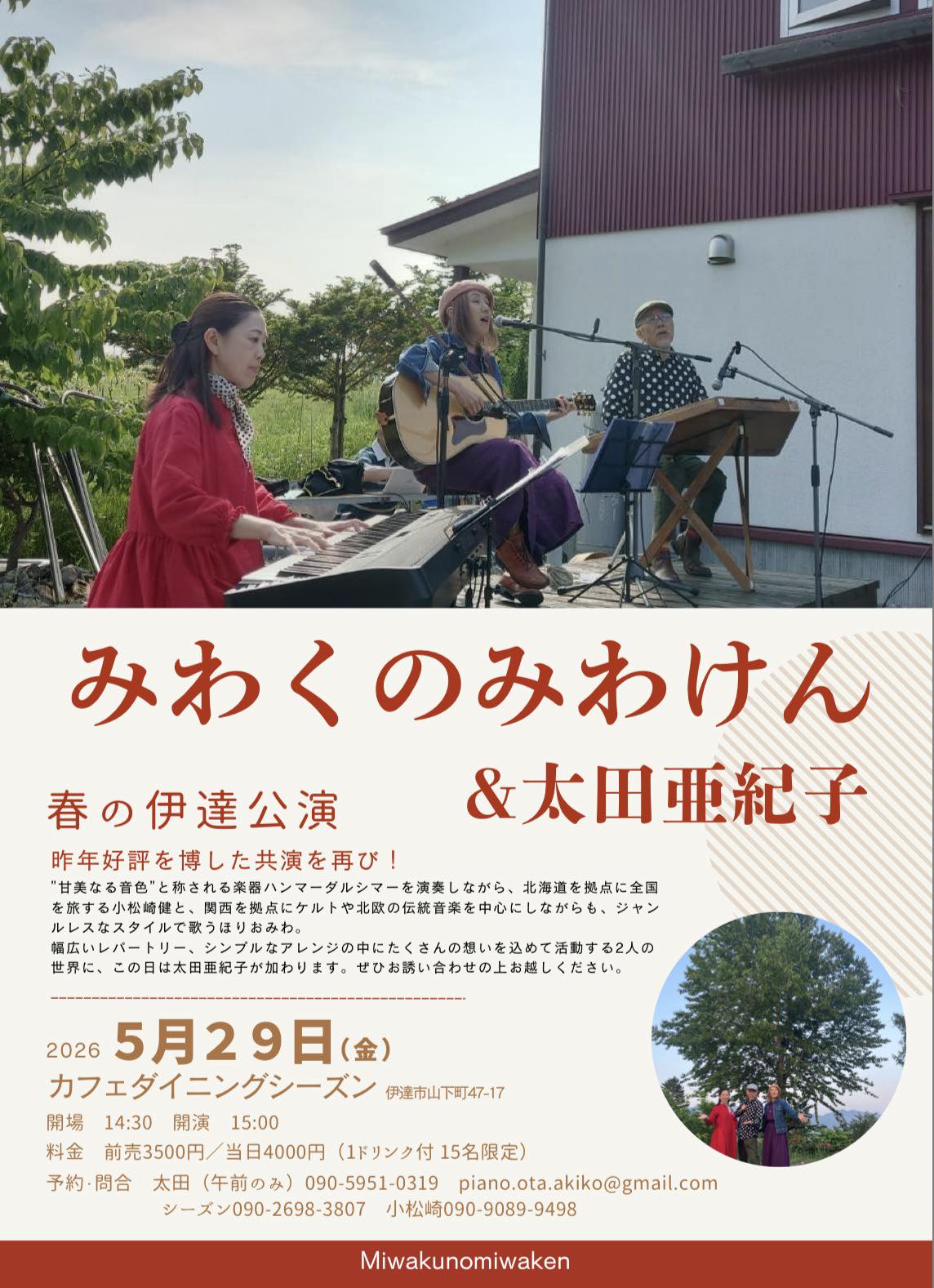 【出演】ほりおみわ(うた・ギター) 太田亜紀子(ピアノ) with 村田弘美(vo)