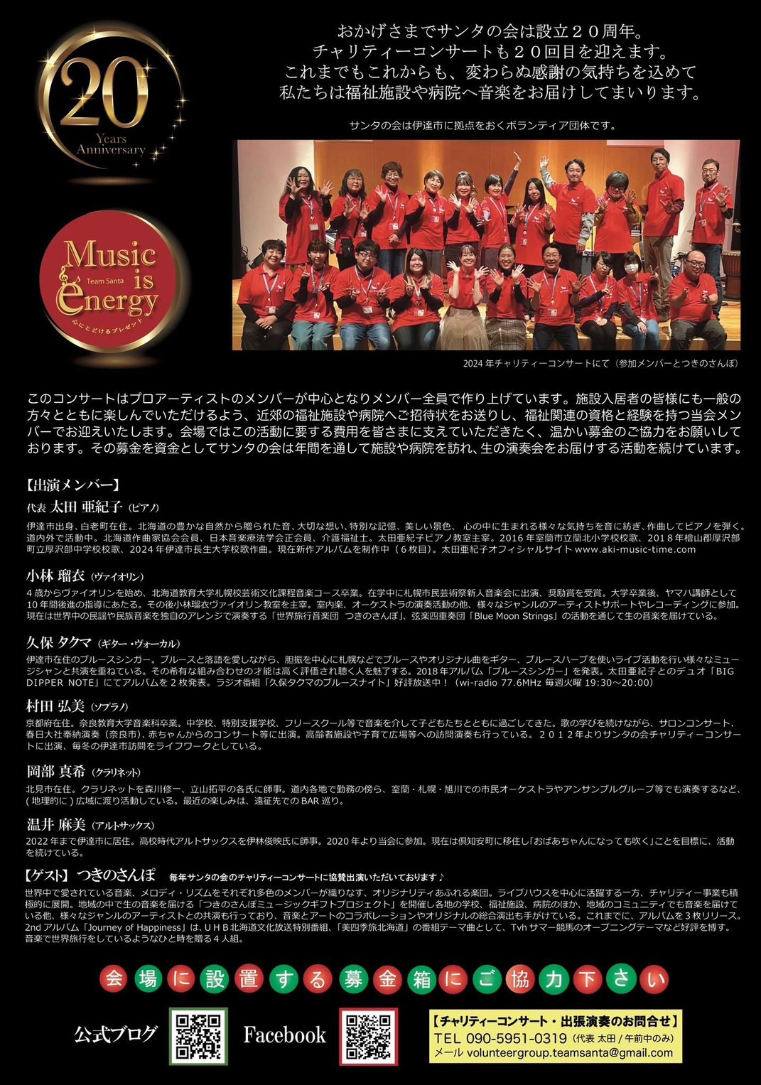 今年はサンタの会チャリティーコンサート20回目を記念した特別なコンサートとなります。